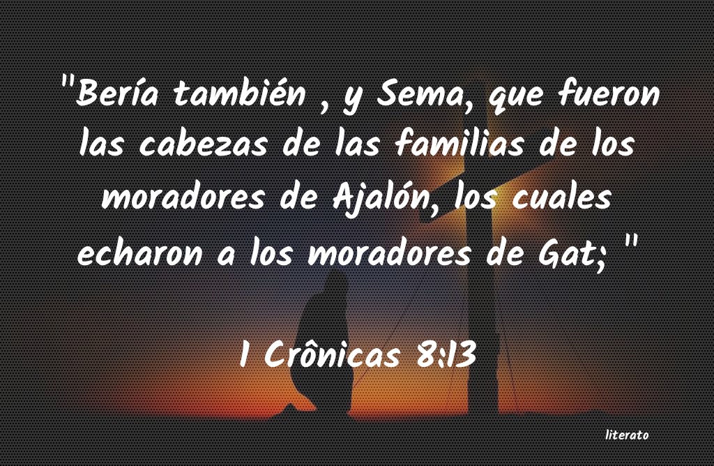 "BerÃÂa también , y Sema, que fueron las cabezas de las familias de los moradores de Ajalón, los cuales echaron a los moradores de Gat; " 1 Crônicas 8:13