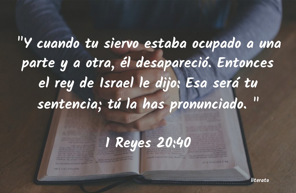 "Y cuando tu siervo estaba ocupado a una parte y a otra, él desapareció. Entonces el rey de Israel le dijo: Esa será tu sentencia; tú la has pronunciado. " 1 Reyes 20:40