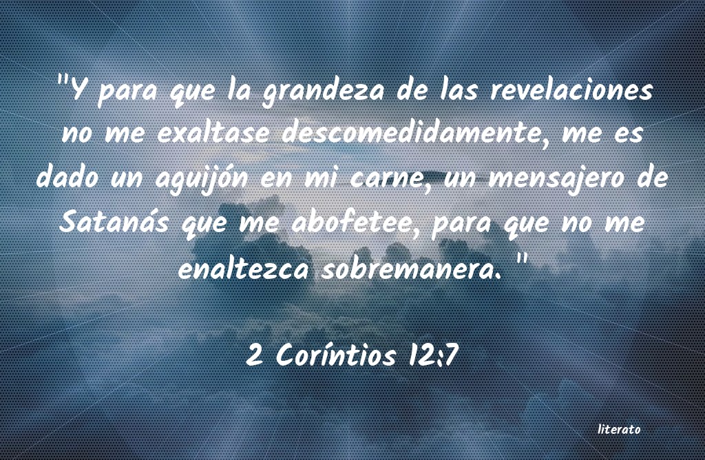 "Y para que la grandeza de las revelaciones no me exaltase descomedidamente, me es dado un aguijón en mi carne, un mensajero de Satanás que me abofetee, para que no me enaltezca sobremanera. "