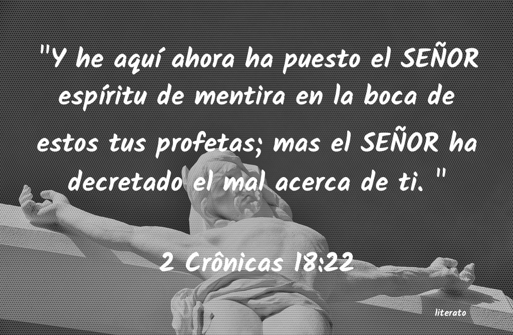 "Y he aquàahora ha puesto el SEÑOR espÃÂritu de mentira en la boca de estos tus profetas; mas el SEÑOR ha decretado el mal acerca de ti. " 2 Crônicas 18:22