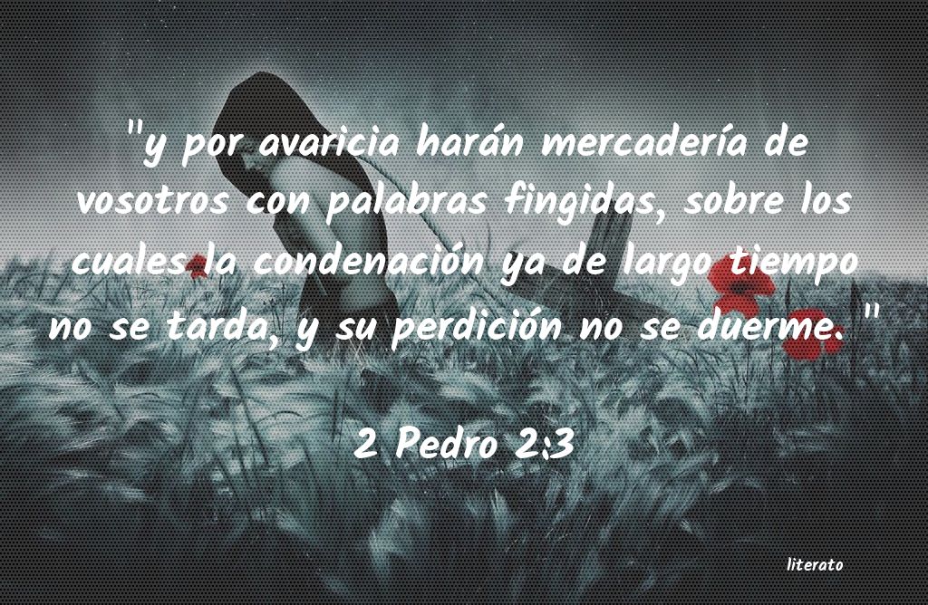 "y por avaricia harán mercaderÃa de vosotros con palabras fingidas, sobre los cuales la condenación ya de largo tiempo no se tarda, y su perdición no se duerme. " 2 Pedro 2:3