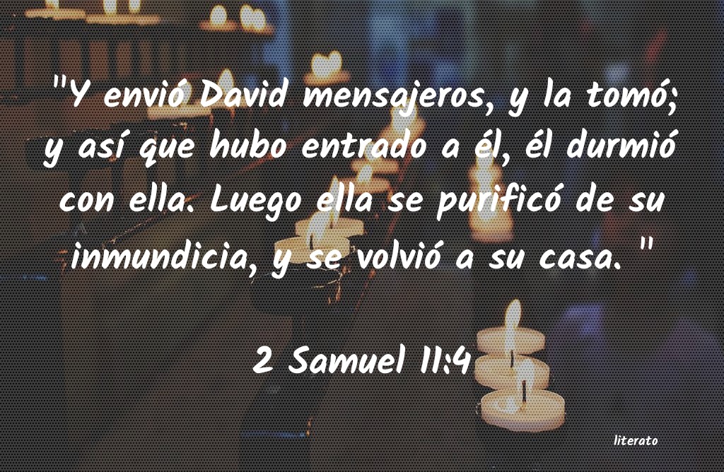 "Y envió David mensajeros, y la tomó; y asà que hubo entrado a él, él durmió con ella. Luego ella se purificó de su inmundicia, y se volvió a su casa. " 2 Samuel 11:4