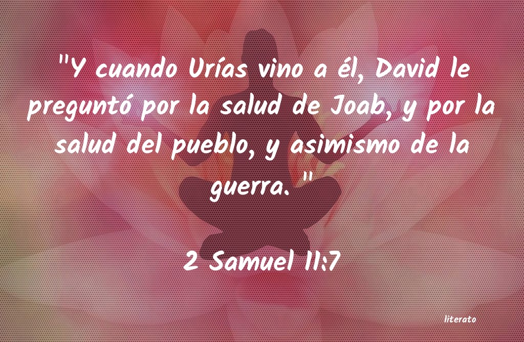 "Y cuando UrÃas vino a él, David le preguntó por la salud de Joab, y por la salud del pueblo, y asimismo de la guerra. " 2 Samuel 11:7