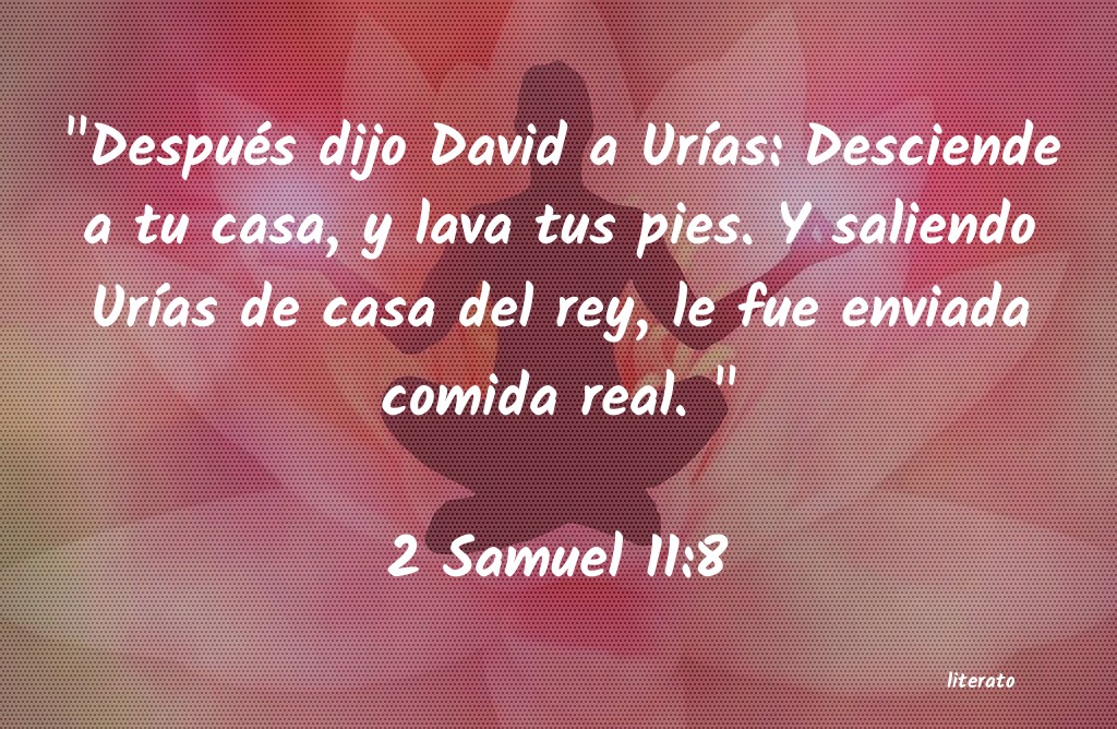 "Después dijo David a UrÃas: Desciende a tu casa, y lava tus pies. Y saliendo UrÃas de casa del rey, le fue enviada comida real. " 2 Samuel 11:8