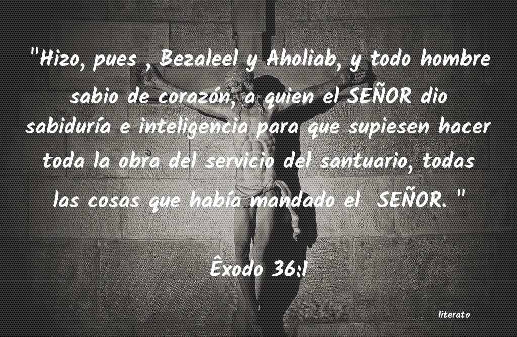 "Hizo, pues , Bezaleel y Aholiab, y todo hombre sabio de corazón, a quien el SEÑOR dio sabidurÃÂa e inteligencia para que supiesen hacer toda la obra del servicio del santuario, todas las cosas que habÃÂa mandado el SEÑOR. "