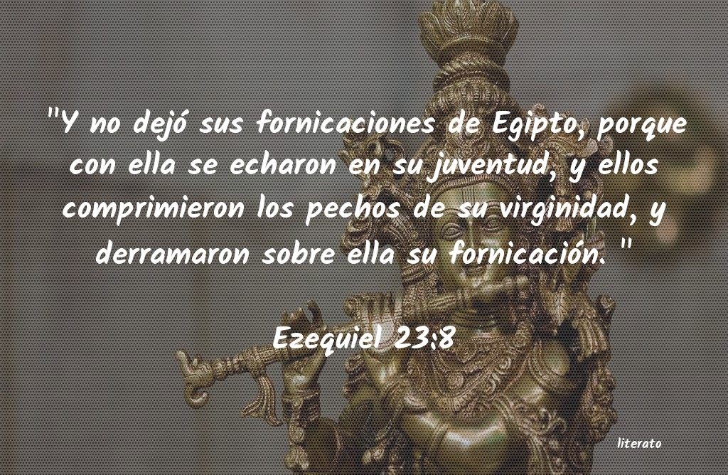 "Y no dejó sus fornicaciones de Egipto, porque con ella se echaron en su juventud, y ellos comprimieron los pechos de su virginidad, y derramaron sobre ella su fornicación. " Ezequiel 23:8
