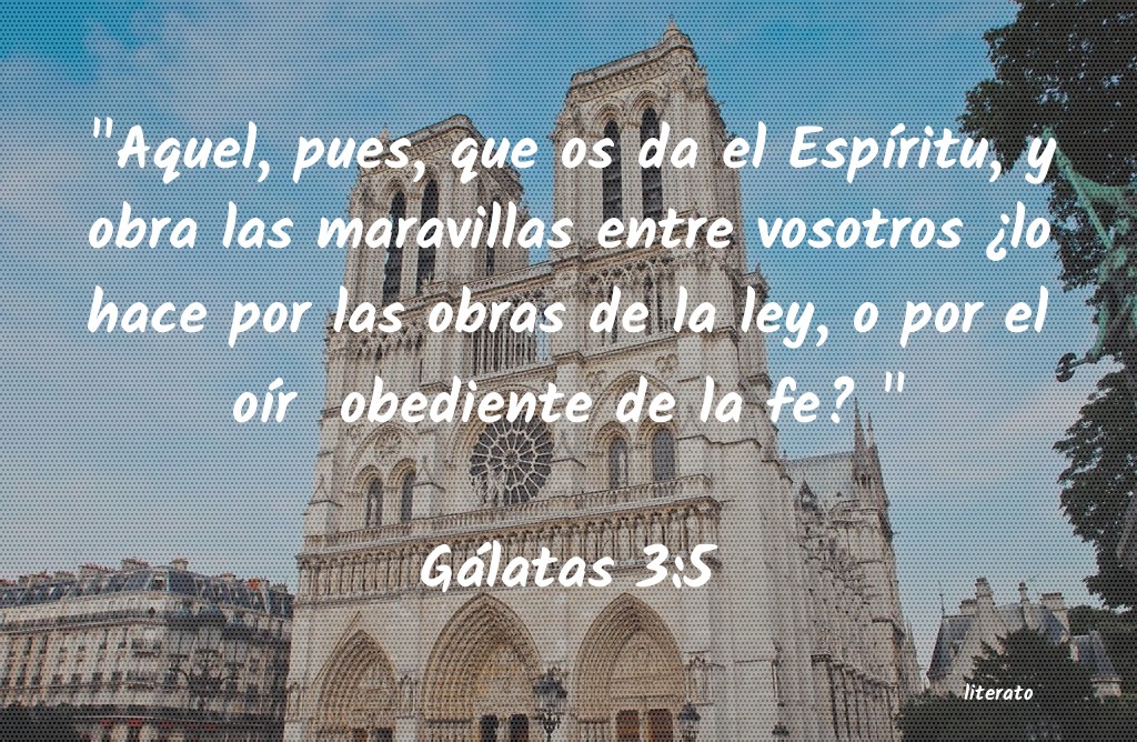 "Aquel, pues, que os da el EspÃÂritu, y obra las maravillas entre vosotros ¿lo hace por las obras de la ley, o por el oÃÂr obediente de la fe? " Gálatas 3:5