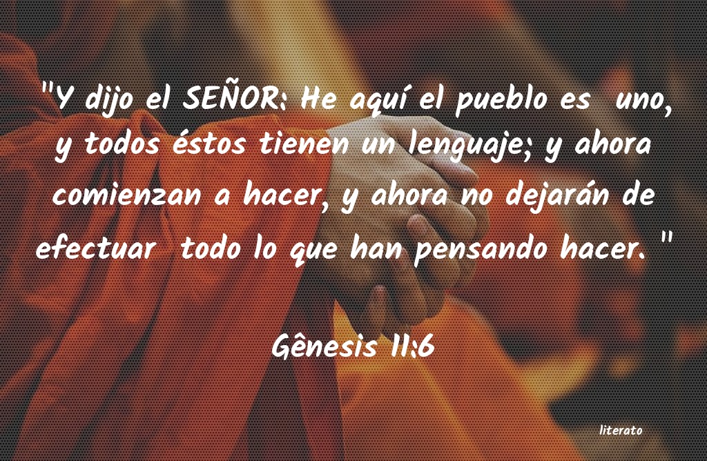 "Y dijo el SEÃOR: He aquà el pueblo es uno, y todos éstos tienen un lenguaje; y ahora comienzan a hacer, y ahora no dejarán de efectuar todo lo que han pensando hacer. " Gênesis 11:6