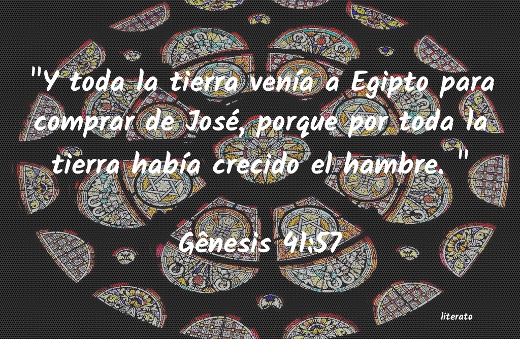 "Y toda la tierra venÃa a Egipto para comprar de José, porque por toda la tierra habÃa crecido el hambre. " Gênesis 41:57