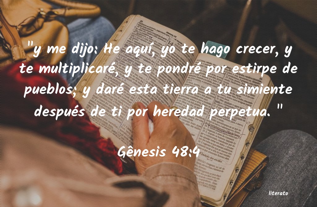 "y me dijo: He aquÃ, yo te hago crecer, y te multiplicaré, y te pondré por estirpe de pueblos; y daré esta tierra a tu simiente después de ti por heredad perpetua. " Gênesis 48:4