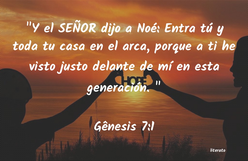 "Y el SEÃOR dijo a Noé: Entra tú y toda tu casa en el arca, porque a ti he visto justo delante de mà en esta generación. " Gênesis 7:1