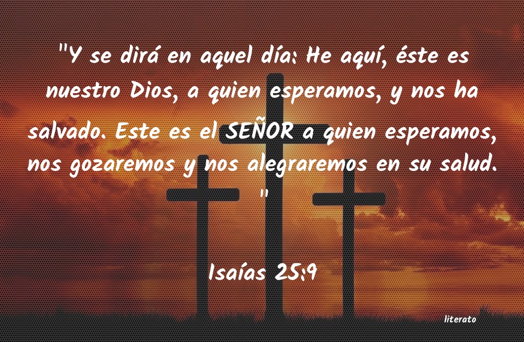 "Y se dirá en aquel dÃÂa: He aquÃÂ, éste es nuestro Dios, a quien esperamos, y nos ha salvado. Este es el SEÑOR a quien esperamos, nos gozaremos y nos alegraremos en su salud. "