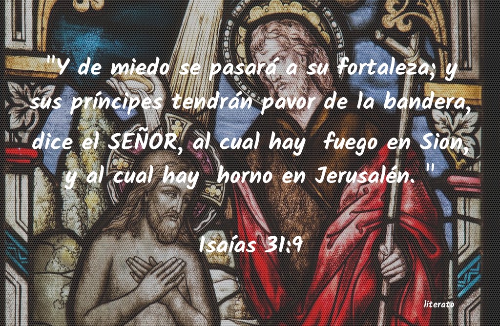 "Y de miedo se pasará a su fortaleza; y sus prÃÂncipes tendrán pavor de la bandera, dice el SEÑOR, al cual hay fuego en Sion, y al cual hay horno en Jerusalén. " IsaÃÂas 31:9