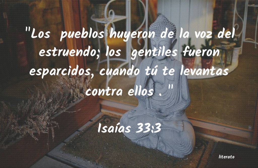 "Los pueblos huyeron de la voz del estruendo; los gentiles fueron esparcidos, cuando tú te levantas contra ellos . " IsaÃÂas 33:3
