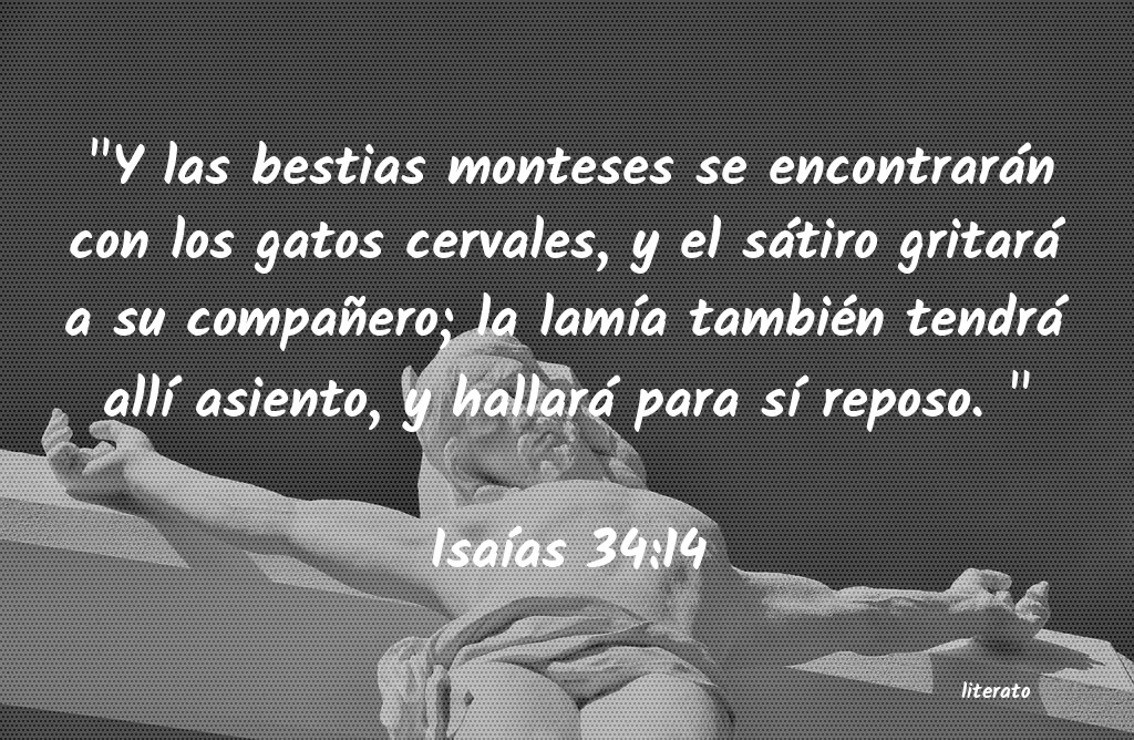 "Y las bestias monteses se encontrarán con los gatos cervales, y el sátiro gritará a su compañero; la lamÃÂa también tendrá allàasiento, y hallará para sàreposo. "