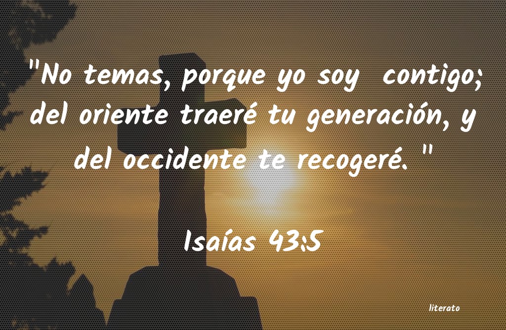 "No temas, porque yo soy contigo; del oriente traeré tu generación, y del occidente te recogeré. " IsaÃÂas 43:5