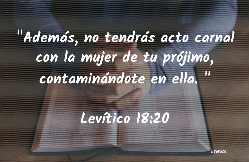 "Además, no tendrás acto carnal con la mujer de tu prójimo, contaminándote en ella. " LevÃÂtico 18:20