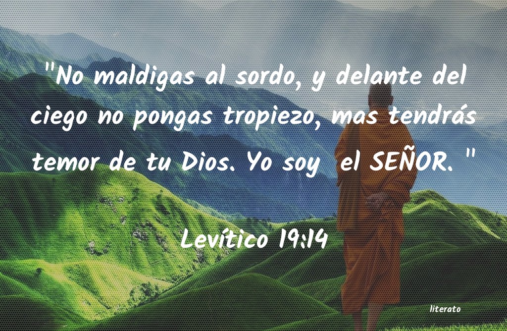 "No maldigas al sordo, y delante del ciego no pongas tropiezo, mas tendrás temor de tu Dios. Yo soy el SEÑOR. " LevÃÂtico 19:14