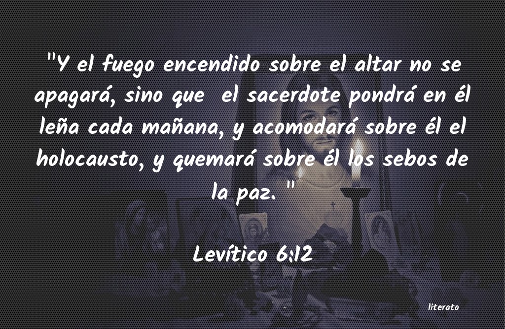 "Y el fuego encendido sobre el altar no se apagará, sino que el sacerdote pondrá en él leña cada mañana, y acomodará sobre él el holocausto, y quemará sobre él los sebos de la paz. "