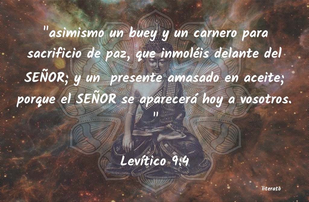 "asimismo un buey y un carnero para sacrificio de paz, que inmoléis delante del SEÑOR; y un presente amasado en aceite; porque el SEÑOR se aparecerá hoy a vosotros. " LevÃÂtico 9:4