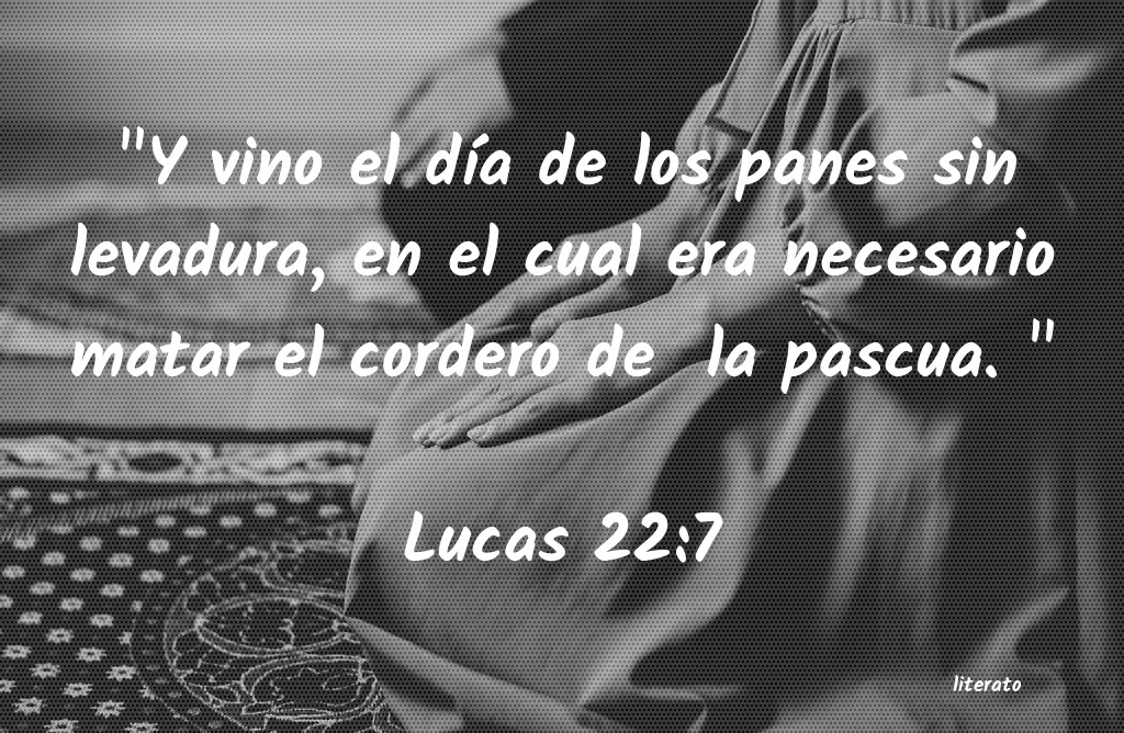 "Y vino el dÃa de los panes sin levadura, en el cual era necesario matar el cordero de la pascua. " Lucas 22:7