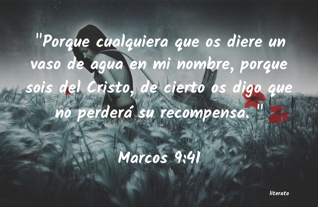 "Porque cualquiera que os diere un vaso de agua en mi nombre, porque sois del Cristo, de cierto os digo que no perderá su recompensa. " Marcos 9:41