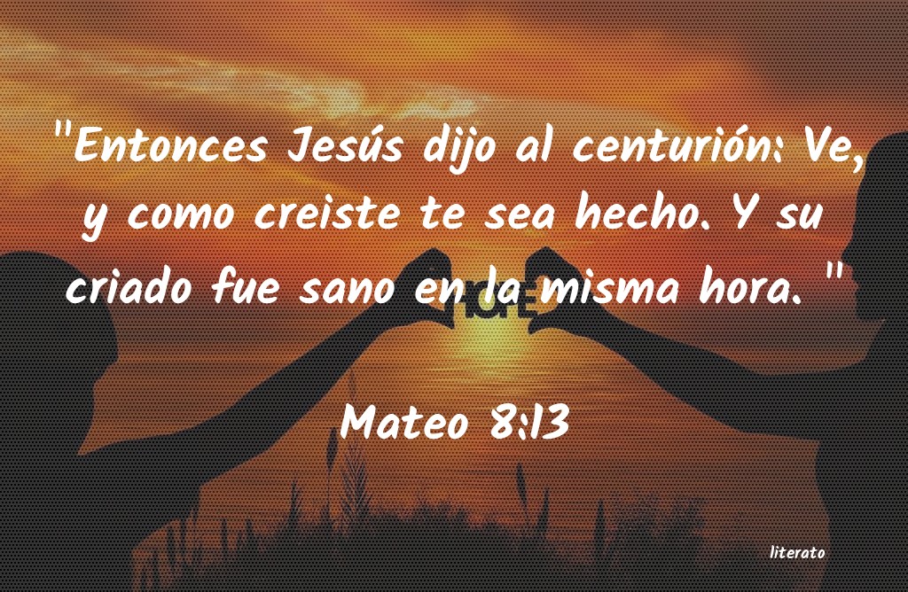 "Entonces Jesús dijo al centurión: Ve, y como creiste te sea hecho. Y su criado fue sano en la misma hora. " Mateo 8:13