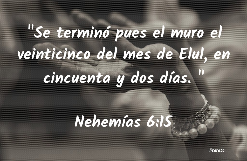 "Se terminó pues el muro el veinticinco del mes de Elul, en cincuenta y dos dÃÂas. " NehemÃÂas 6:15