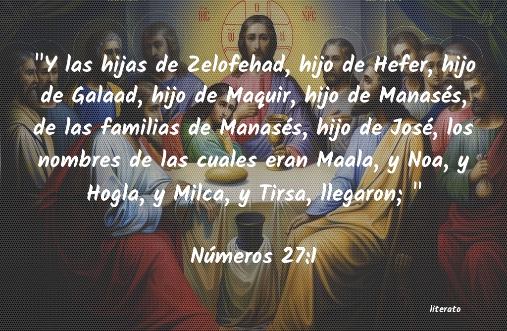 "Y las hijas de Zelofehad, hijo de Hefer, hijo de Galaad, hijo de Maquir, hijo de Manasés, de las familias de Manasés, hijo de José, los nombres de las cuales eran Maala, y Noa, y Hogla, y Milca, y Tirsa, llegaron; "