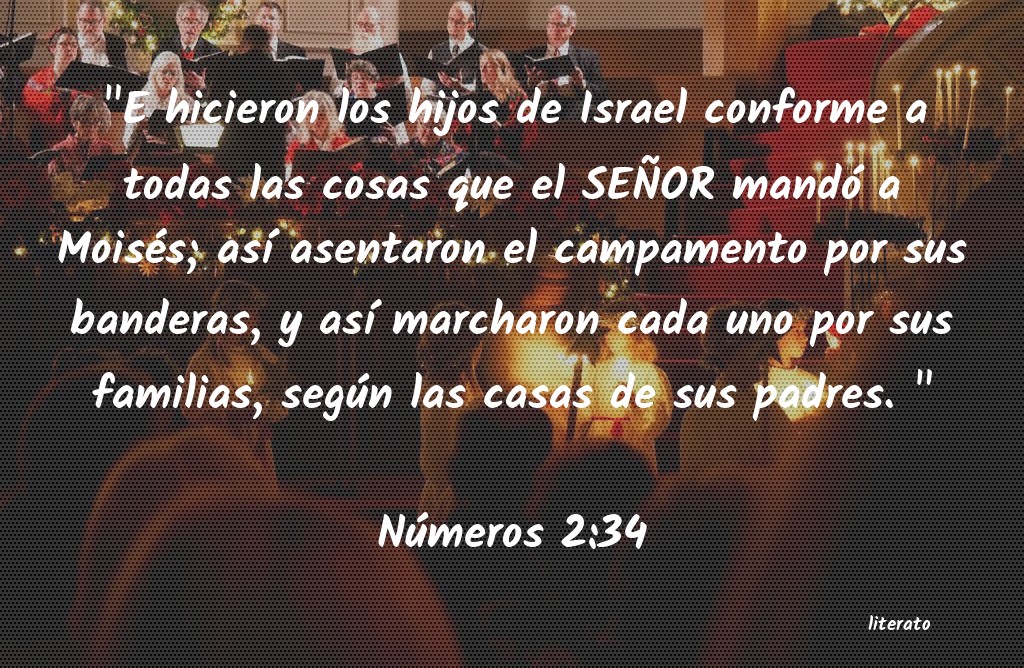 "E hicieron los hijos de Israel conforme a todas las cosas que el SEÃOR mandó a Moisés; asà asentaron el campamento por sus banderas, y asà marcharon cada uno por sus familias, según las casas de sus padres. "