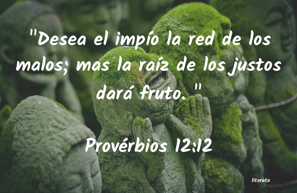 "Desea el impÃÂo la red de los malos; mas la raÃÂz de los justos dará fruto. " Provérbios 12:12