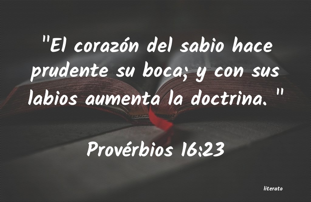 "El corazón del sabio hace prudente su boca; y con sus labios aumenta la doctrina. " Provérbios 16:23