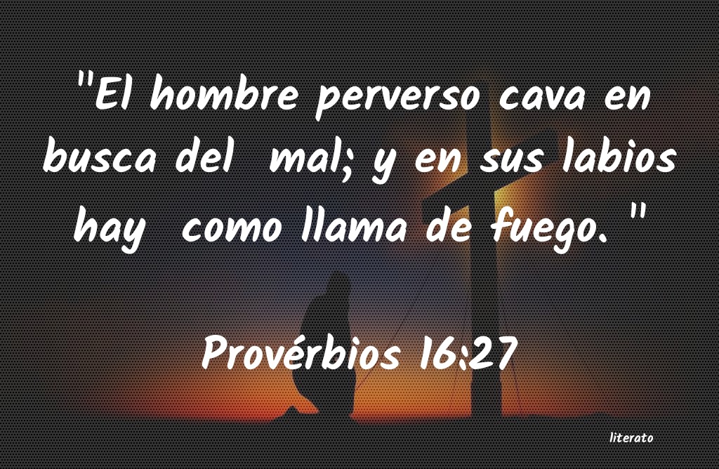"El hombre perverso cava en busca del mal; y en sus labios hay como llama de fuego. " Provérbios 16:27