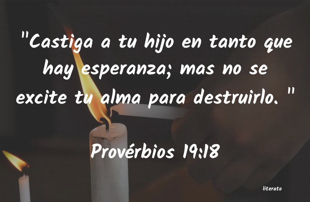 "Castiga a tu hijo en tanto que hay esperanza; mas no se excite tu alma para destruirlo. " Provérbios 19:18