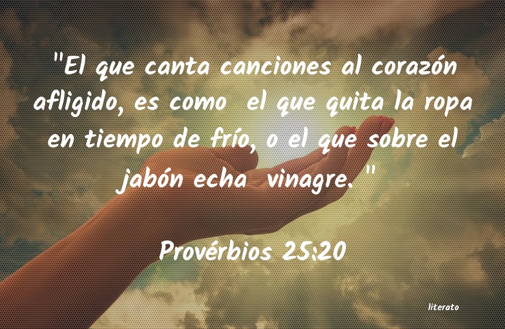 "El que canta canciones al corazón afligido, es como el que quita la ropa en tiempo de frÃÂo, o el que sobre el jabón echa vinagre. " Provérbios 25:20