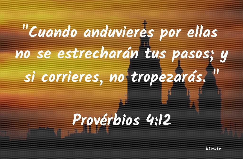 "Cuando anduvieres por ellas no se estrecharán tus pasos; y si corrieres, no tropezarás. " Provérbios 4:12