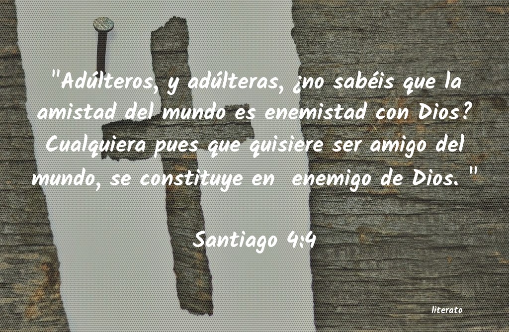 "Adúlteros, y adúlteras, ¿no sabéis que la amistad del mundo es enemistad con Dios? Cualquiera pues que quisiere ser amigo del mundo, se constituye en enemigo de Dios. " Santiago 4:4