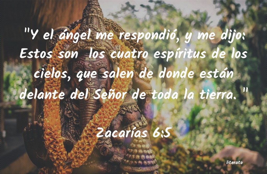 "Y el ángel me respondió, y me dijo: Estos son los cuatro espÃÂritus de los cielos, que salen de donde están delante del Señor de toda la tierra. " ZacarÃÂas 6:5