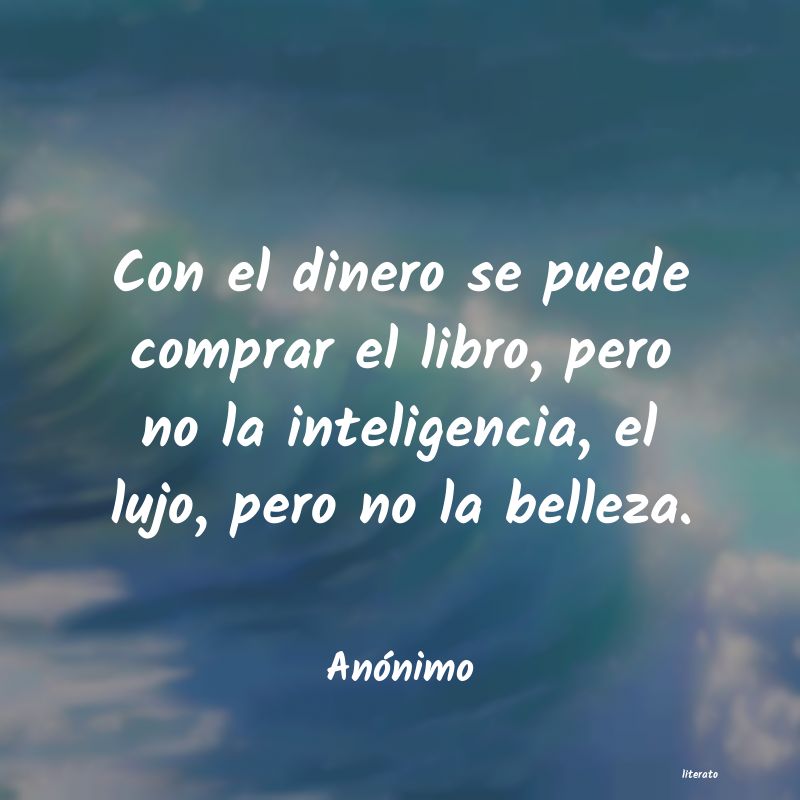 Con el dinero se puede comprar el libro, pero no la inteligencia, el lujo, pero no la belleza.