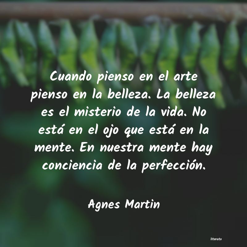 Cuando pienso en el arte pienso en la belleza. La belleza es el misterio de la vida. No está en el ojo que está en la mente. En nuestra mente hay conciencia de la perfección.