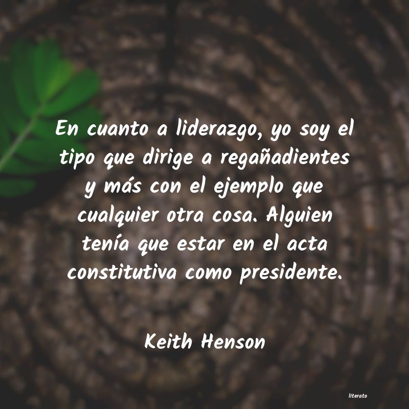 En cuanto a liderazgo, yo soy el tipo que dirige a regañadientes y más con el ejemplo que cualquier otra cosa. Alguien tenía que estar en el acta constitutiva como presidente.