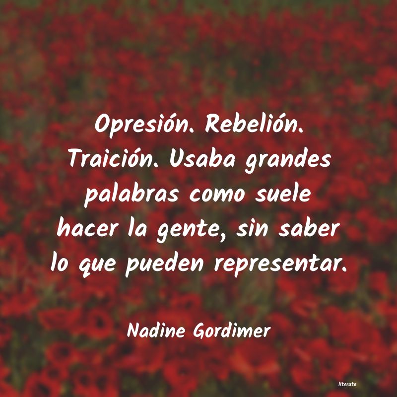 Opresión. Rebelión. Traición. Usaba grandes palabras como suele hacer la gente, sin saber lo que pueden representar.