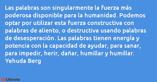Las palabras son singularmente la fuerza más poderosa disponible para la humanidad. Podemos optar por utilizar esta fuerza constructiva con palabras de aliento, o destructiva usando palabras de desesperación. Las palabras tienen energía y potencia con la capacidad de ayudar, para sanar, para impedir, herir, dañar, humillar y humillar.