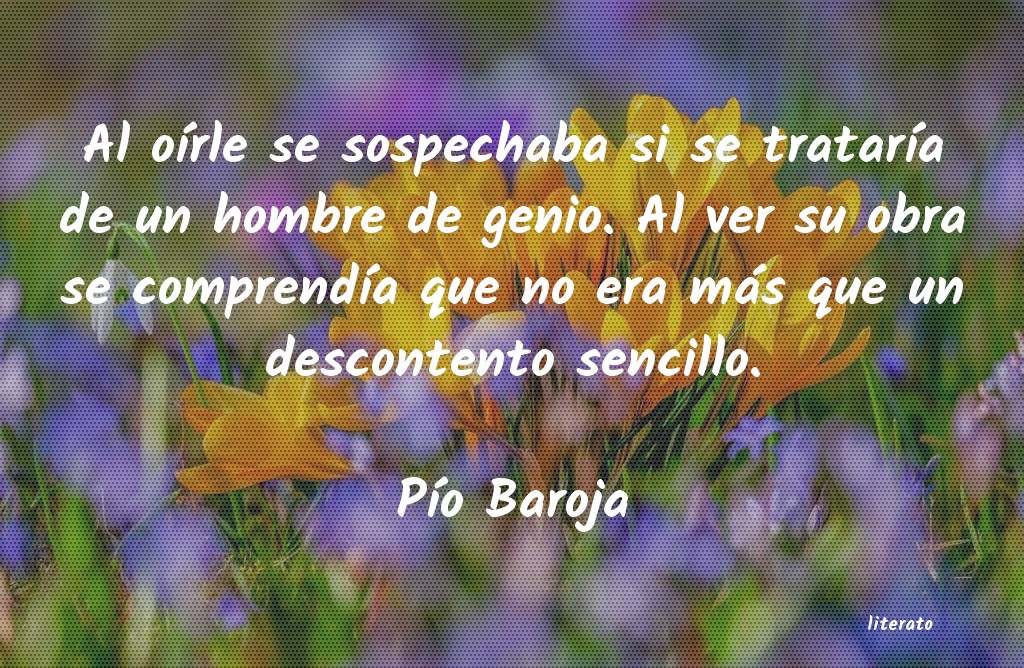 Al oÃrle se sospechaba si se tratarÃa de un hombre de genio. Al ver su obra se comprendÃa que no era más que un descontento sencillo.