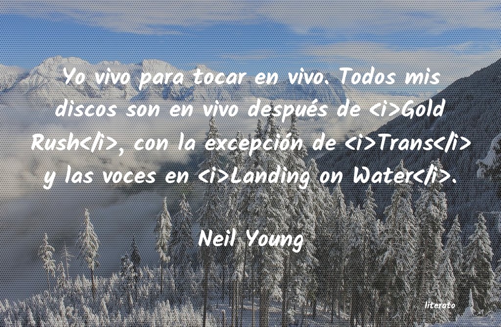 Yo vivo para tocar en vivo. Todos mis discos son en vivo después de Gold Rush, con la excepción de Trans y las voces en Landing on Water.