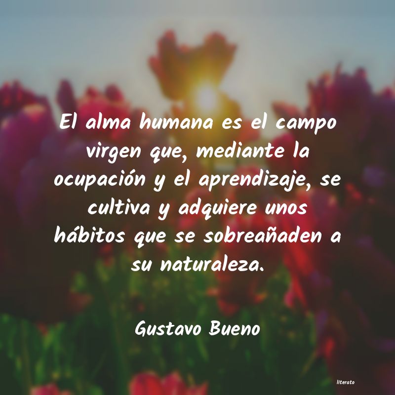 El alma humana es el campo virgen que, mediante la ocupación y el aprendizaje, se cultiva y adquiere unos hábitos que se sobreañaden a su naturaleza.
