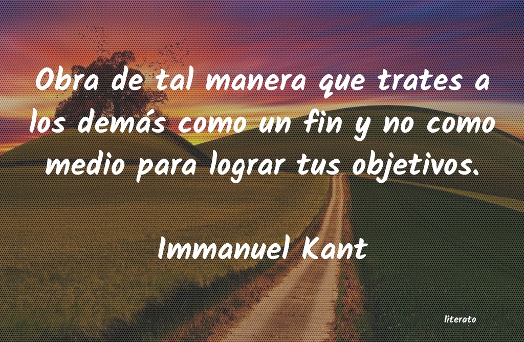 Obra de tal manera que trates a los demás como un fin y no como medio para lograr tus objetivos.