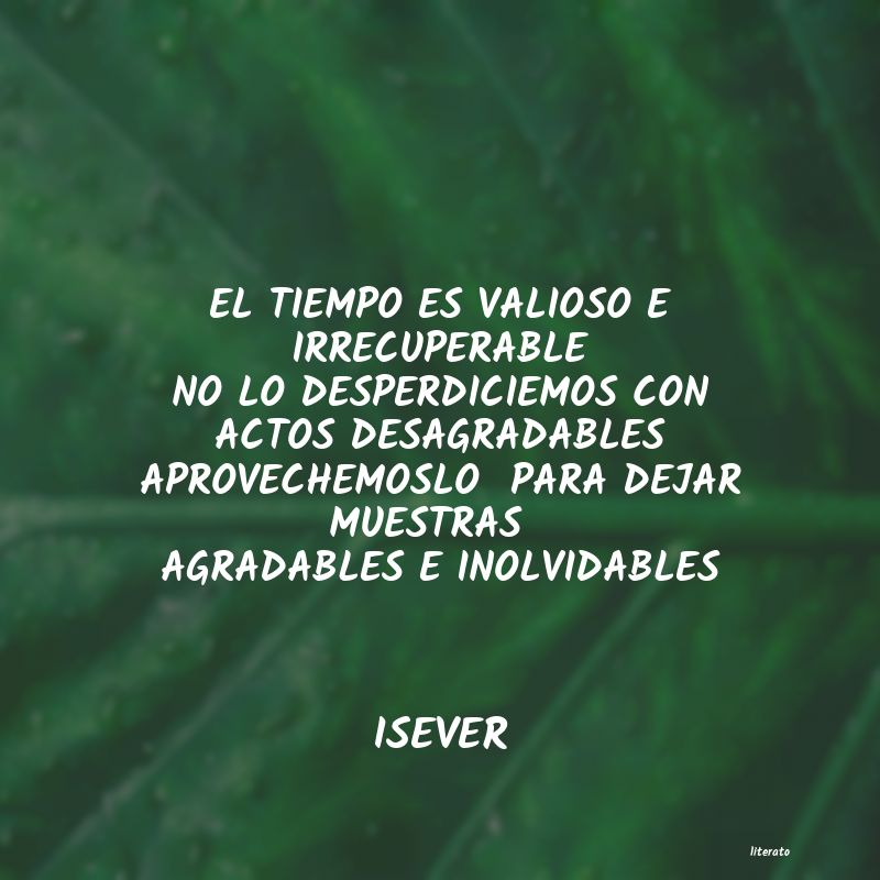 EL TIEMPO ES VALIOSO E IRRECUPERABLE