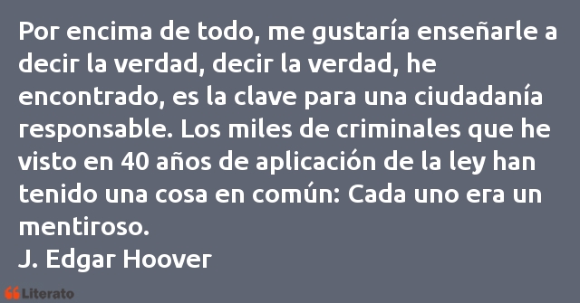 Por encima de todo, me gustarÃa enseñarle a decir la verdad, decir la verdad, he encontrado, es la clave para una ciudadanÃa responsable. Los miles de criminales que he visto en 40 años de aplicación de la ley han tenido una cosa en común: Cada uno era un mentiroso.