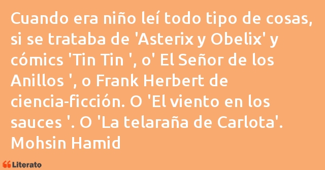 Cuando era niño leí todo tipo de cosas, si se trataba de 'Asterix y Obelix' y cómics 'Tin Tin ', o' El Señor de los Anillos ', o Frank Herbert de ciencia-ficción. O 'El viento en los sauces '. O 'La telaraña de Carlota'.